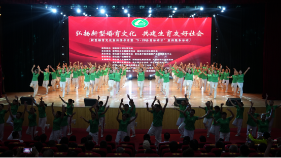 活动现场呈现了丰富多元的原创文艺表演,开场歌舞《亲亲安化我爱你》传递新时代家庭文明愿景,安化县新型婚育文化推荐官现场发起婚育新风倡议,歌舞情景剧《婚育遍开幸福花》以欢快的情景演绎倡导适龄婚育,快板节目《快板话新风 婚育展新容》将婚事简办、家国情怀融入快板韵律,新型婚育文化广场舞推广曲《幸福花开新时代》将婚姻、生育政策要点转化为灵动舞姿,一系列的展现形式让新型婚育文化在寓教于乐中深入人心。