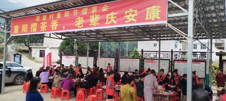 岁岁重阳,今又重阳。为弘扬中华民族尊老、敬老、爱老的传统美德,10月29日,联盟村热闹非凡,一场以“重阳擂茶香,老辈庆安康”为主题的重阳节擂茶会在此温情启幕,300余位村内老人欢聚一堂,共叙邻里情,同享节日暖。