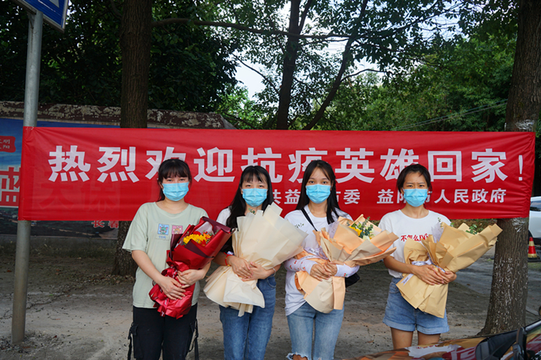 9月14日,资阳支援张家界的核酸检测医疗队平安归来。在医疗支援的32天里,她们以“高标准、高效率、高质量、严要求、零差错”为目标,与兄弟医院的同仁并肩战斗、精诚合作,圆满完成了支援任务。区卫健局、益阳市中医医院、资阳区妇幼保健院相关负责人前往幸福渠收费站迎接4名英雄凯旋。