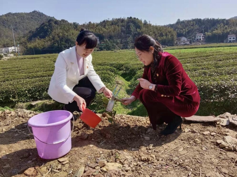 首先,桃江县脑科医院村委开展了“妇女维权”知识讲座。然后,她们分成两组,一组对该村出行不便的精神障碍患者进行上门义诊和慰问,并为他们清扫屋前屋后和整理室内。另一组与县妇联、修山镇妇联和花桥港村村支两委成员一同共植“共建巾帼林”。一棵棵嫩芽满枝的树苗错落有致的矗立在美丽的花桥港村,也承载着对“岗村共建,助力乡村振兴”的见证和对美好未来生活的希望和憧憬。