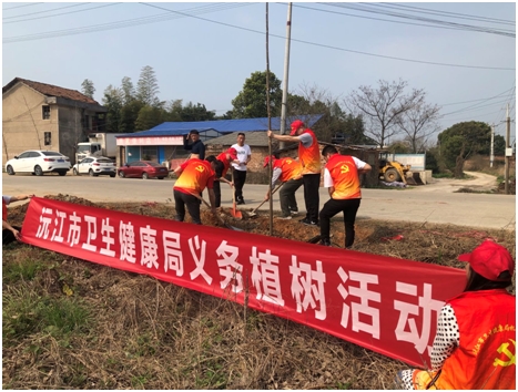 3月14日上午,沅江市卫生健康局组织机关干部、党员志愿者等20余人,来到琼湖街道新建社区开展“创建园林城市,弘扬植树造林风尚”义务植树活动。