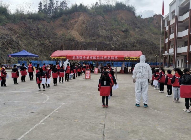 为落实中央、省市县疫情防控要求,全面提升武潭镇全员核酸采样实战能力,保障人民群众生命安全和身体健康。3月29日下午,桃江县武潭镇在镇中心小学开展全员核酸采样应急演练,镇政府、镇中心卫生院、镇中心校、派出所等多部门联合参加全员核酸采样应急演练。