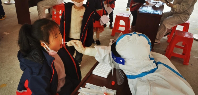 此次应急演练严格按照全员核酸采样工作方案开展,根据采样点实际情况规范设置采样台4张、信息登记台4张、待检区、信息登记区、临时隔离区、采样区、缓冲区、清洁区、样本暂存处、医用垃圾暂存处等区域,严格落实常态化疫情防控各项措施。演练中,工作人员引导学生有序进行测体温、查验健康码、信息登记和核酸采集,被采人员按顺序间隔一米排队,依次进行咽拭子采样。采样结束后,标本由专车转运进行检测,医疗废弃物由专业人员进行清运处置,专业消杀人员对现场进行了终末消杀。