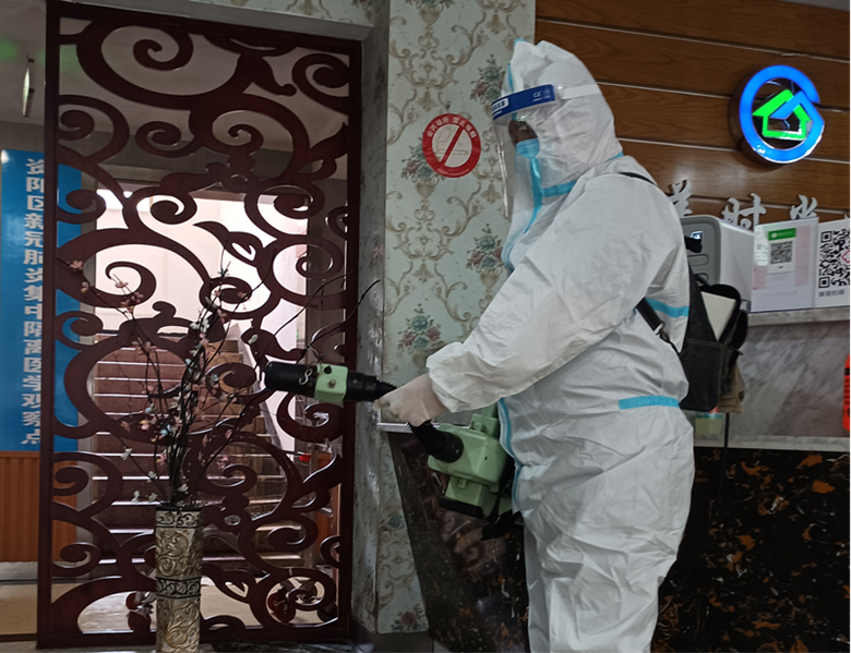 疾控人李华光的一项重要工作就是环境消杀。他主动学习不同场地的消毒药物与用水比例、熟悉消毒环境、集中检修消毒器械,加强隔离场所的消毒措施,同时指导隔离场所工作人员学习和掌握消毒知识,与隔离场所人员建立沟通机制,确保随叫随到。3月以来,就已消毒75000平方米。在每次出征前,他都要检查随带物资,回来后对机器进行保养充电,为下一次出征做好准备。