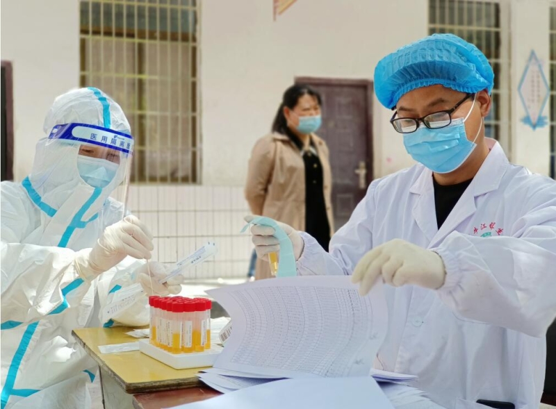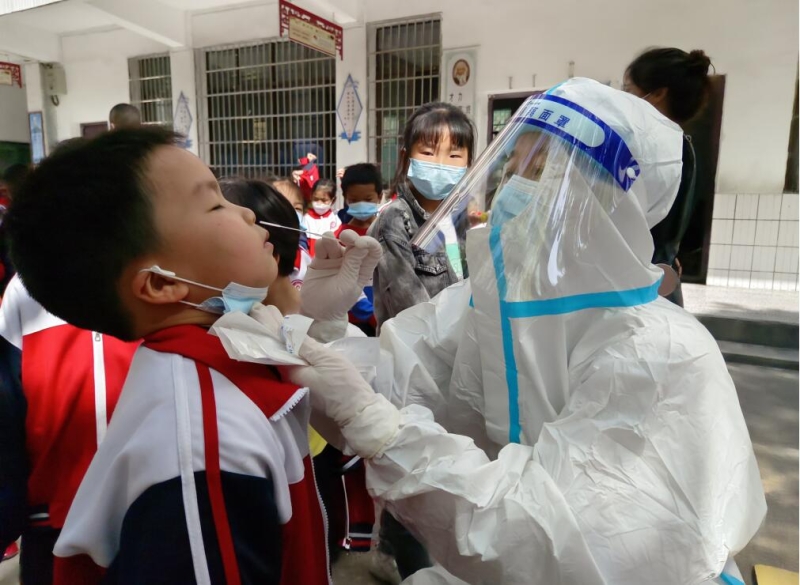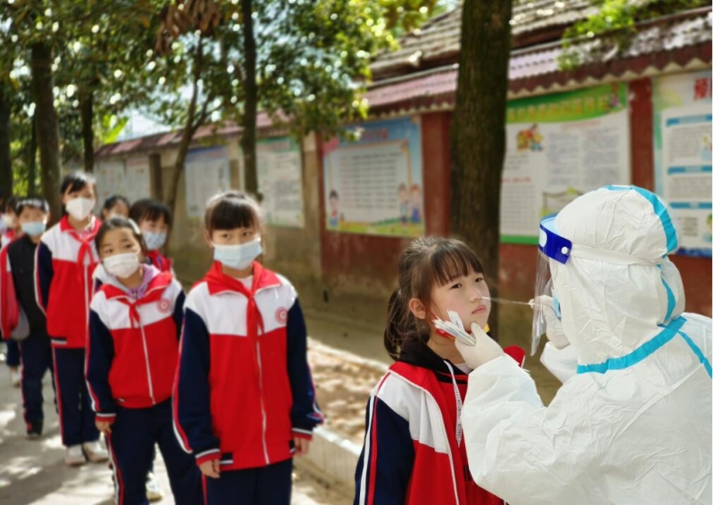 4月7日,由桃江县石牛江镇卫生院党员志愿者组成的核酸采集医疗队来到石牛江镇中心小学,为该校学生开展核酸检测,助力校园疫情防控常态化。