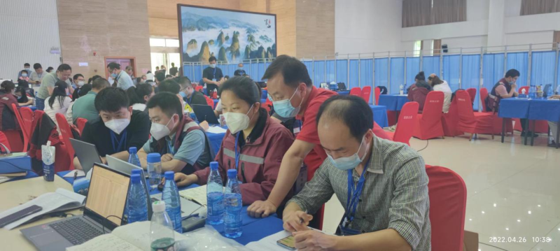 李强(右四)整理撰写流调报告,查找处置漏洞