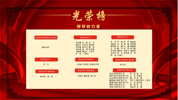 一次专业鼓励。为弘扬南丁格尔精神,树立正面典型、激励先进,引导广大护理人员积极进取,更好地为人民群众健康服务,“5.12”国际护士节之际,该院对评选出的市级、县级、院级等61名先进护理工作者、5个先进病区予以表彰。