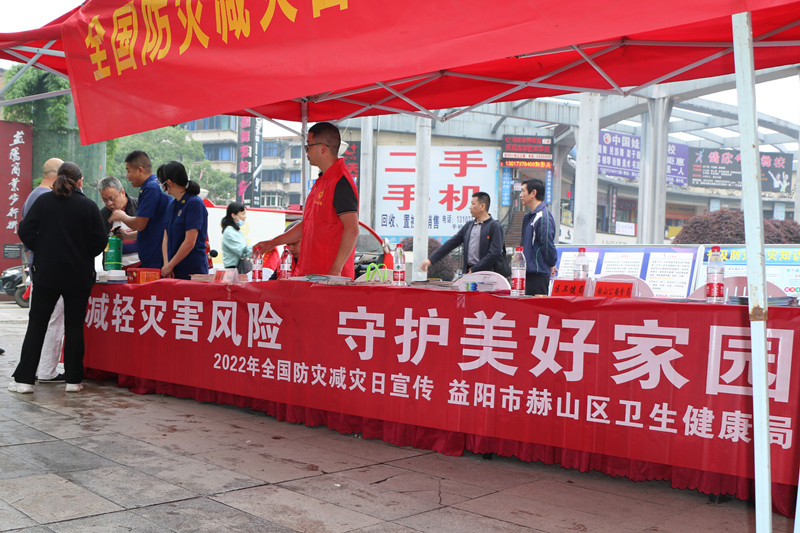 5月12日,赫山区卫生健康局以“减轻灾害风险 守护美好家园”为主题在赫山步行街广场开展了系列防灾减灾宣传活动。