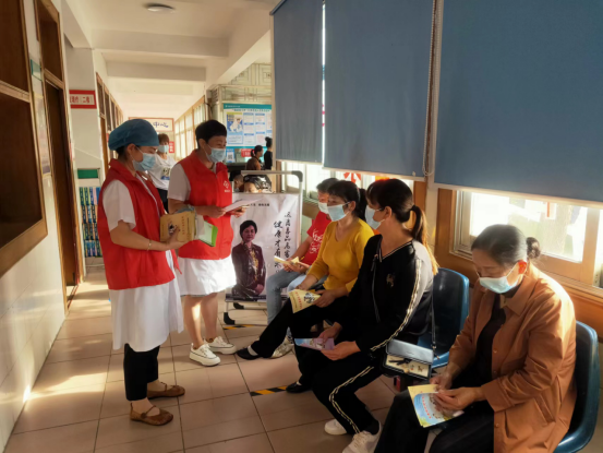 志愿者对前来免费体检的群众开展禁毒法制宣传