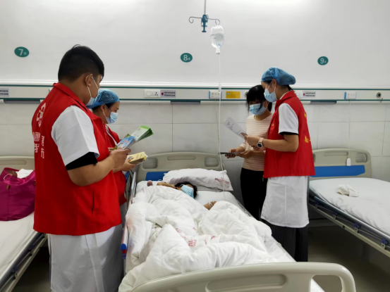 在病房。为更好地推动医院禁毒法制宣传教育工作向纵深发展,使大家在思想上、心理上、行为上筑牢禁毒拒毒坚强防线。志愿者针对不同人群特点把禁毒法制宣传阵地搬进医院科室、病房,带上相关宣传资料,通过向广大就医群众面对面的宣传、讲解,同医务人员签订禁止黄赌毒、拒绝邪教、防范电信网络诈骗承诺书等形式,将“预防为主,综合治理,四禁并举”的禁毒方针传递到每一位手中。