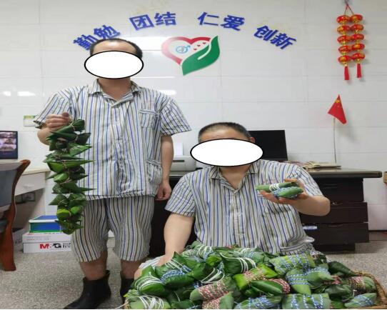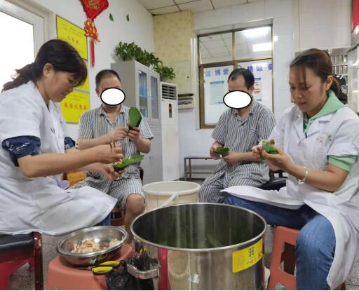 在活动过程中,医患相互协作,积极沟通,医护人员一边包粽子一边与患者交心谈心,认真倾听患者的祈盼,对其心理状态进行评估与疏导,在不知不觉中对患者进行了一次工娱治疗,这种在劳作中添加潜移默化的治疗让患者更容易接受,效果也更为高效。