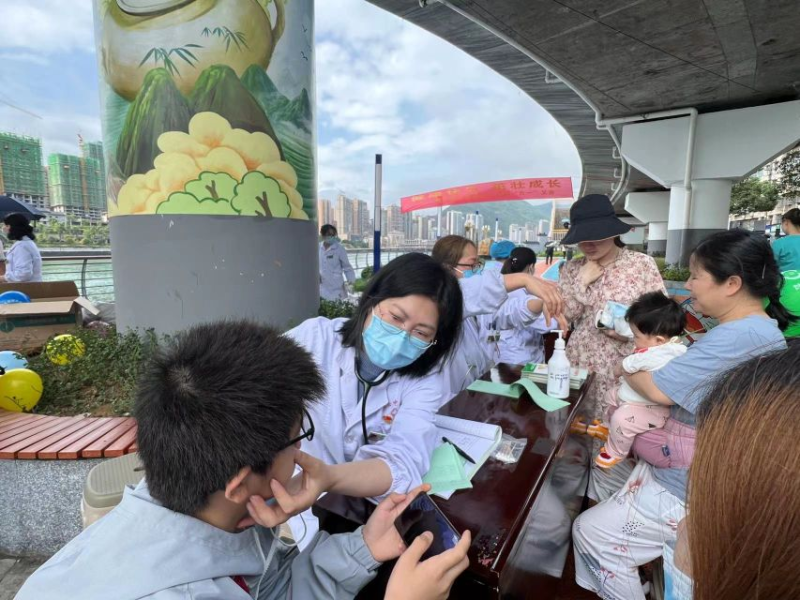 活动现场,前来就诊咨询的市民络绎不绝,医务人员为市民发放保健手册,为儿童免费测量身高、体重,赠送驱蚊香囊和中医药健康指导,并为他们提供健康咨询服务,得到了广大市民的一致好评。