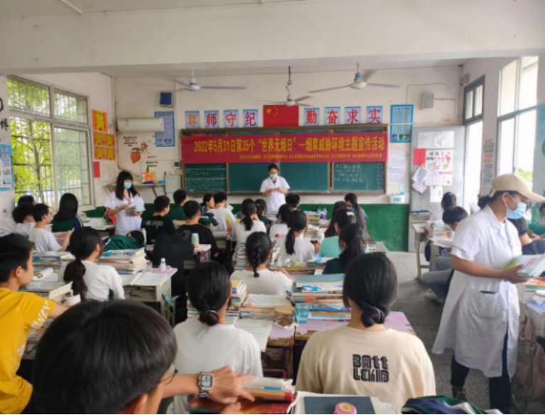 今年5月31日是第35个世界无烟日,宣传主题是“烟草威胁环境”。根据国家、省市卫生健康委《关于开展第35个世界无烟日活动的通知》要求,沅江市卫健局联合各镇(街道、中心)在辖区单位、学校开展了禁烟、控烟、戒烟知识讲座及宣传义诊活动,以提高基层群众对吸烟危害的认识,提升全民健康素养水平,切实推动健康沅江行动中控烟行动及无烟党政机关建设工作。