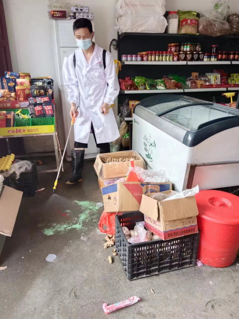工作人员给各村委(社区)发放了84消毒液、漂白粉等消毒物资,并前往漫水严重的居民家中,对厨房、水井、店铺、楼梯间进行全面的消杀,不留任何死角。并积极开展消毒指导和安全饮水及饮食的宣传教育,被洪水淹过的房屋、家具、日常用品,会有多种细菌、病毒残留,工作人员细心的告知村民要进行充分的清洗,勤开窗通风,消毒杀菌;正值夏季,天气逐渐炎热,同时工作人员告知村民要做好防蚊、防蝇、防鼠害等“三防”工作,确保灾后无大疫。最后工作人员引导村民做好个人防护工作,为尽快恢复干净、整洁的村庄提供安心的健康保障。