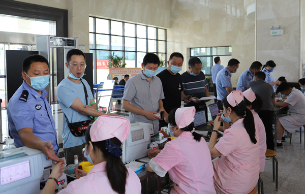 6月27日上午,桃江县公安局组织民警、协辅警开展义务献血活动。