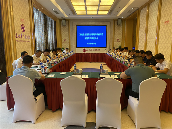 图为省中医药管理局调研我市中医药产业发展座谈会现场