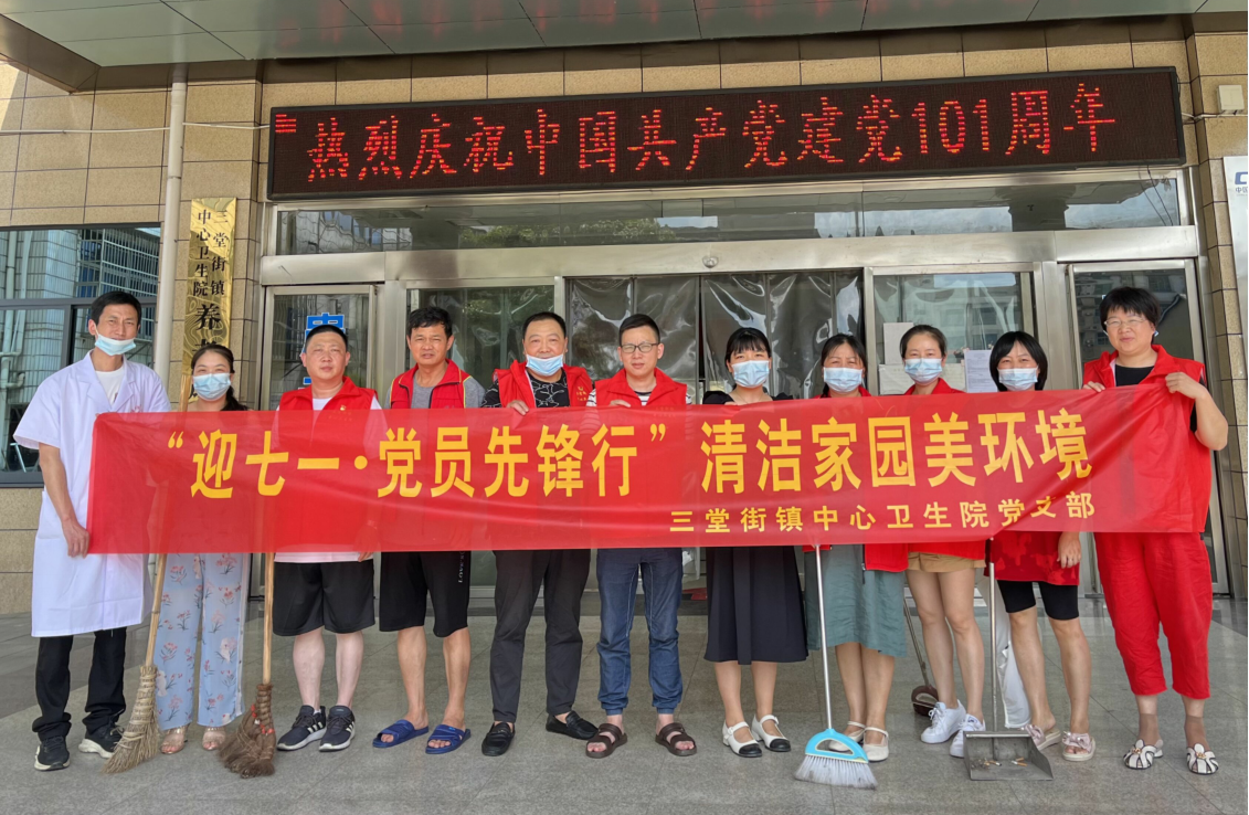 7月1日,桃江县三堂街镇中心卫生院党支部组织开展“迎七一党员先锋行”清洁家园美环境”志愿服务活动,组织在职党员、入党积极分子在医院院区进行义务劳动,以干净优美、整洁有序的环境迎接建党101周年。