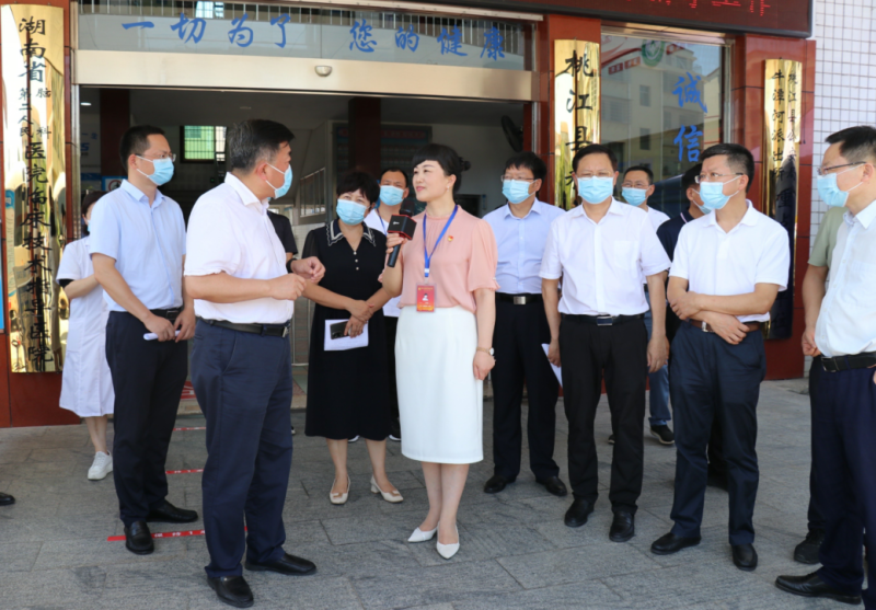 7月11日上午,省政协党组成员、副主席李民率调研组,围绕基层精神卫生工作来到桃江县脑科医院调研。市政协党组书记、主席胡立安,市政协党组成员、副主席周朗,县委副书记、县长周登高,县政协党组书记、主席杨凯波分别陪同调研。