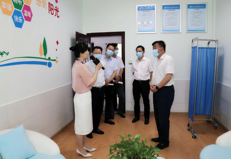 李民一行实地察看了桃江县脑科医院心理康复中心和病友文化园地,院长昌艳桃详细汇报了近几年来医院的发展情况和心理服务建设开展情况。