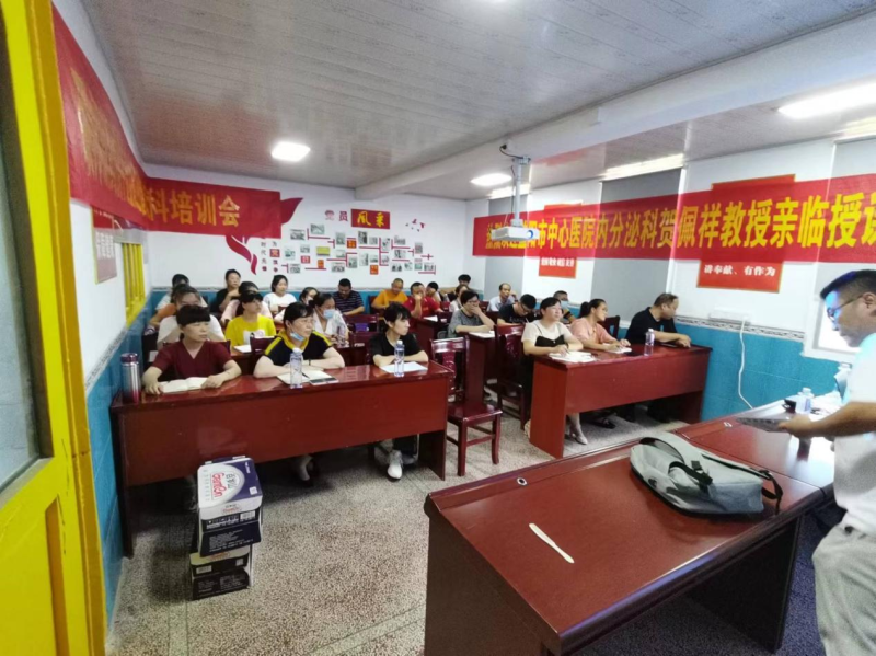 为进一步提高医护人员、村医对糖尿病预防、规范诊疗、合理用药等专业水平,近日,大通湖区金盆镇卫生院特邀请益阳市中心医院内分泌科贺佩祥教授来院举办了一场糖尿病专科知识培训会。