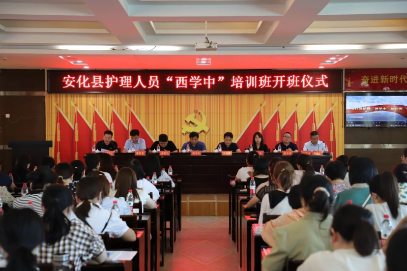 为提升我县临床护理人员中医护理服务能力,充分发挥中医护理特色优势,更好地满足群众对中医药服务的需求,7月15日,安化县护理人员“西学中”培训班在安化县中医医院开班,湖南省中医药大学科技处处长田雪飞、湖南省中医药大学护理学院党委书记、院长罗尧岳等领导专家出席开班仪式,县卫健局党组成员、副局长夏无畏出席并讲话。
