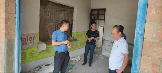 华阁中心卫生院院长王德武随同县卫健局副局长陈剑和综治股股长何迎春现场检查老诊所房屋状况(图)