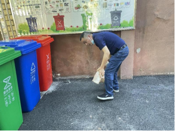 8月12日下午,资阳血防医院党员志愿者在院领导带领下协同大码头新兴街社区开展新时代文明实践服务,开展环境卫生治理,发放宣传资料,提醒戴口罩勤洗手,并挨家挨户上门开展“生活垃圾分类”宣传。