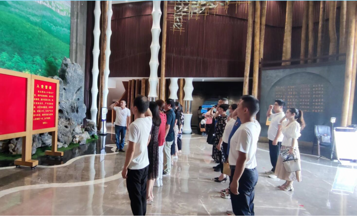 在竹廉文化馆内,党员们纷纷举起右手,重温了入党誓词。接着,在解说员的带领下,先后参观了历史发展厅、资源生态厅、工业产品厅、饮食保健厅、非遗传承厅、精神家园厅、关怀交流厅等八个展厅。展厅以竹子廉洁文化为主题,各具特色,以中国传统文化与竹廉文化、自然与人文充分交融的方式,深刻展示着桃江丰富的竹林资源和浓厚的竹廉文化氛围。一件件物品、一幅幅画面、一个个案例,诉说着桃江党史人物廉洁故事,宏扬着革命先烈们守廉洁、扬正气的精神,彰显着桃江传统廉洁文化的博大精深。