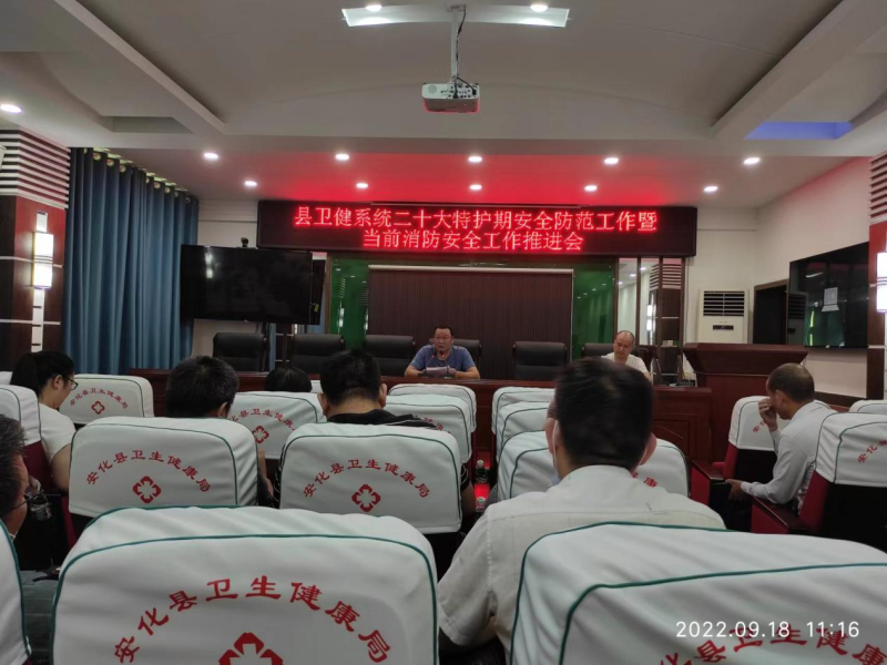 为深入贯彻省市县安全生产紧急会议精神,深刻汲取长沙“9.16”电信大楼火灾事故教训,9月18日上午,安化县卫健局紧急召开全系统二十大特护期安全防范工作暨当前消防安全工作推进会,局党组成员、副局长杨乐山参加会议并讲话,局机关相关股室长和各医疗卫生单位分管领导及保卫部门负责人共计69人参会。