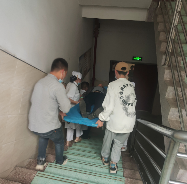 演练过程中,各小组分工协作开展救援:疏散组将住院门诊楼所有人员全部疏散至安全区域;安全警戒组在事故现场快速设置警戒隔离危险区;抢险救援组持铁锹、单架等救援器械赶赴现场进行救援及逐一排查人员伤亡情况;伤员救护组第一时间内携带医疗急救箱对现场伤员进行急救;通讯联络组随时掌握通报事故情况,联系合作医院,请求医疗救援。各应急小组在救援总指挥的协调指挥下协同作战,反应迅速,顺利完成施救。