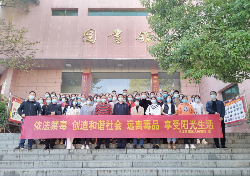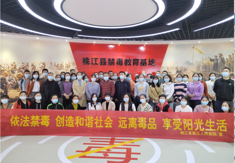 为进一步加强医院干职工的毒品预防教育,提高职工参与禁毒斗争的意识与识毒、防毒、拒毒的能力,根据省禁毒办《关于组织公职人员参观禁毒教育基地的通知》文件精神,2022年10月12日下午,桃江县第三人民医院组织干职工70余人前往桃江县禁毒教育基地开展以“依法禁毒 创造和谐社会,远离毒品 享受阳光生活”为主题的禁毒知识教育学习活动。