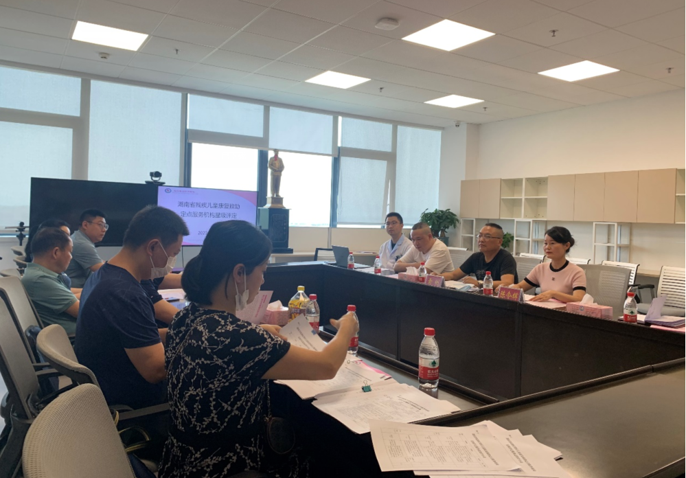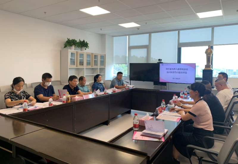现今在国家政策大力支持下, “0-6岁残疾儿童康复救助”项目得到推广和宣传。为提升桃江县妇幼保健院残疾儿童定点康复机构的服务能力,规范行业服务标准。2022年8月25日,益阳市残疾人联合会康复部刘勇理事长等领导及评审专家组,对该院康复中心进行了星级评定工作。