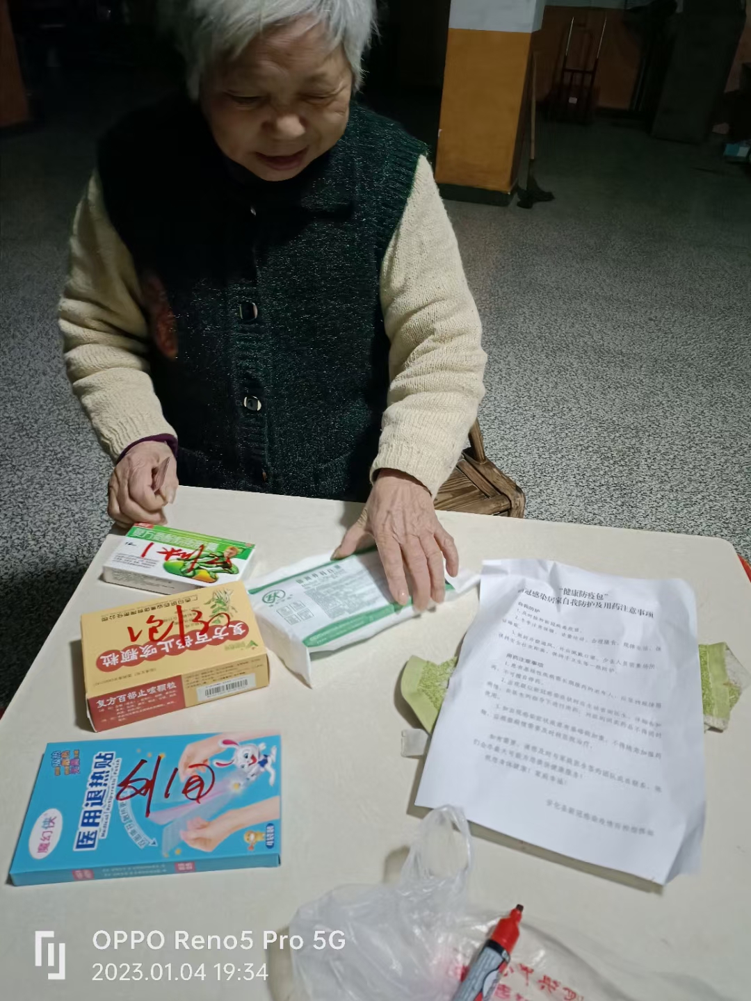 感谢党和政府,感谢医生,正愁买不到退烧药,就给我送上门了。”小淹镇石峰村的陈奶奶向上门送防疫包的医务人员连声道谢。1月4日,小淹镇辖区内65岁以上合并8类基础疾病的老年人群,收到了来自医务人员免费上门发放的防疫包,内含布洛芬8片、复方氨酚烷胺胶囊、复方百部止咳颗粒一盒、一次性医用外科口罩1包、退热贴1包。