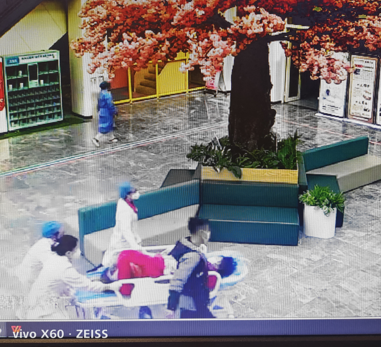 听到呼喊声,当时正在门诊大厅取药的儿保医生王旺立马赶过去,同时赶紧呼叫急诊科,通知产科与产房做好准备。急诊医生周晓兰跟护士刘贵华听到呼叫,马上拖着平车赶过去,看到孕妇已经躺在地上,周医生赶紧上前检查情况,发现胎头已经娩出,地上一大滩的血水,马上就要娩出,已经来不及将产妇送到产房,如果不立即处理,新生儿和产妇都会有危险,于是周医生立即为产妇接生,不到两分钟,产妇顺利产下一名男婴。孩子哭声响亮,大家悬着的心总算放了下来,周医生当即给婴儿清理呼吸道,并进行保暖,简单处置后迅速将产妇与婴儿抱上平车,紧急转送至产房,王医生早已将手术电梯控制在一楼,到达五楼产房,医生与助产士们已经在门口等候,进入产房后,快速、冷静、有条不紊的对母子二人进行了相应的医疗处置,经产科及儿科医生评估,孩子、母亲都正常,母子平安!家属连连表示感谢,“真的是太谢谢你们了,谢谢你们的及时处理,我老婆跟孩子才能平安无事,真是太感谢你们了”