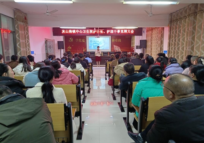 近日,桃江县灰山港镇中心卫生院开展了护士长、护理干事岗位竞聘大会。6名护理人员参与了本次竞聘。县妇联、县卫健局、县人民医院、县中医院相关领导担任评委。医院院领导、中层骨干、职工代表近100人现场观摩。