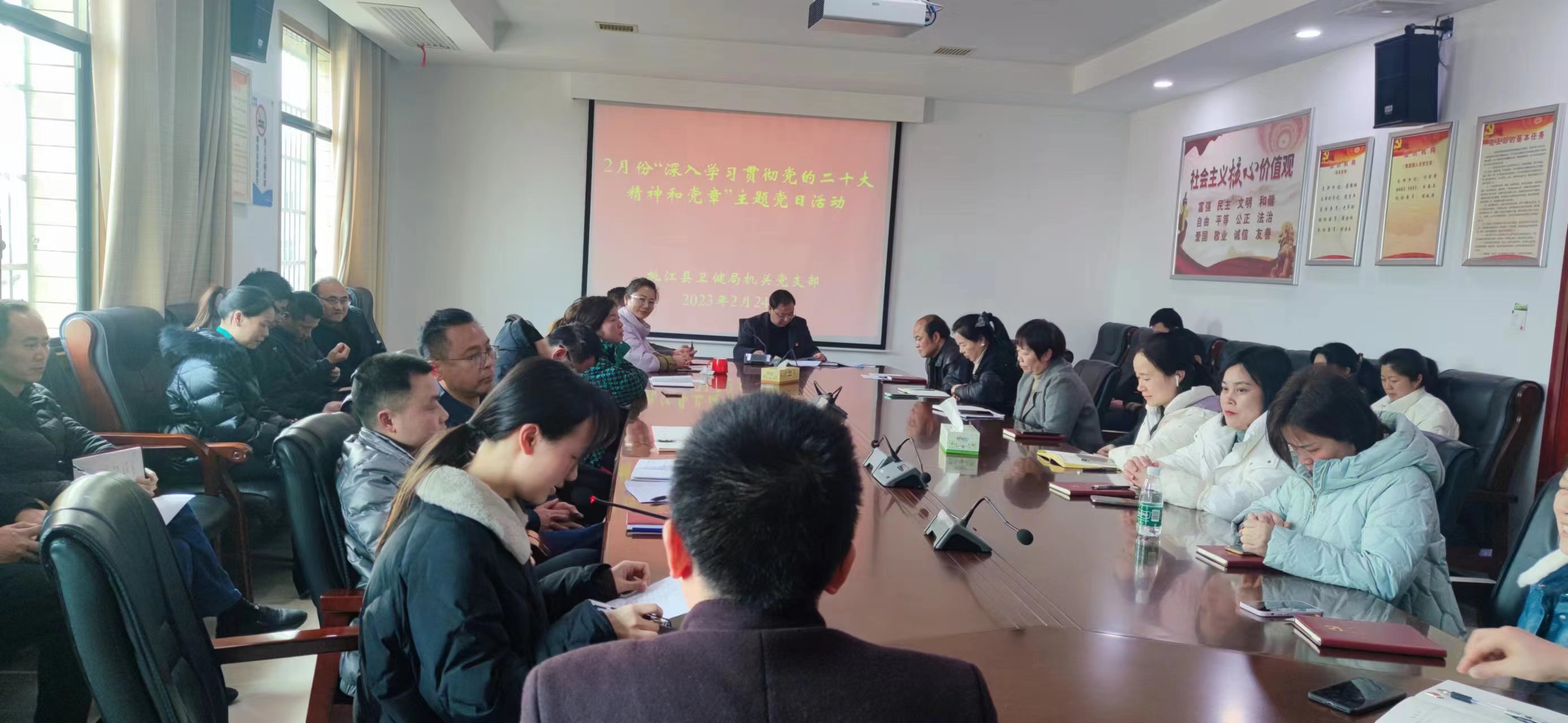 2月24日,桃江县卫健局机关党支部开展了2月份“深入学习贯彻党的二十大精神”主题党日活动,围绕“一课一片一述一推一讲座”,内容丰富、形式多样。