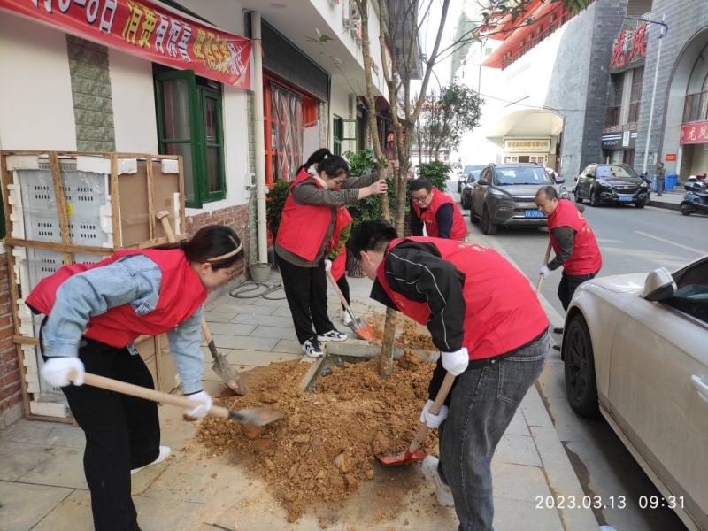 图为安化县卫健局在县城茶香路志愿进行植树