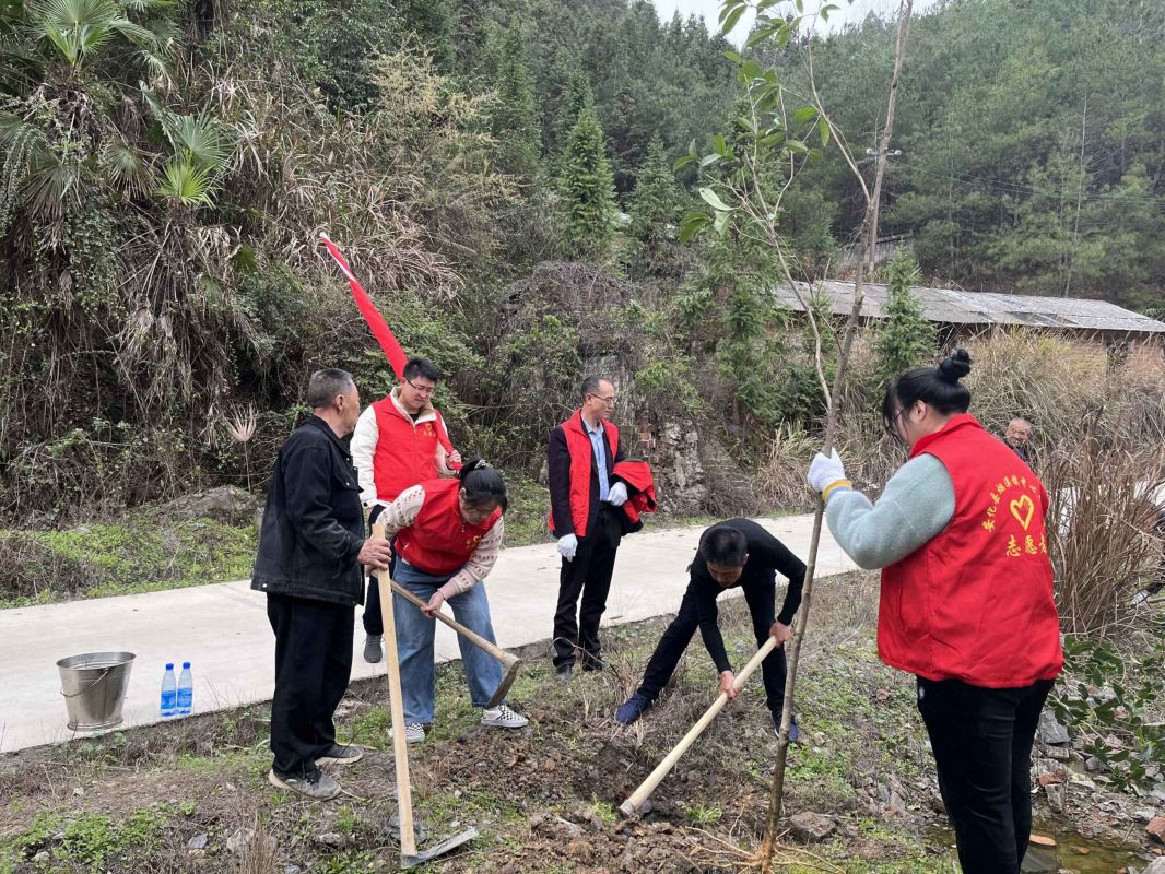 图为烟溪镇中心卫生院党员干部和地方村民党员一起进行志愿植树