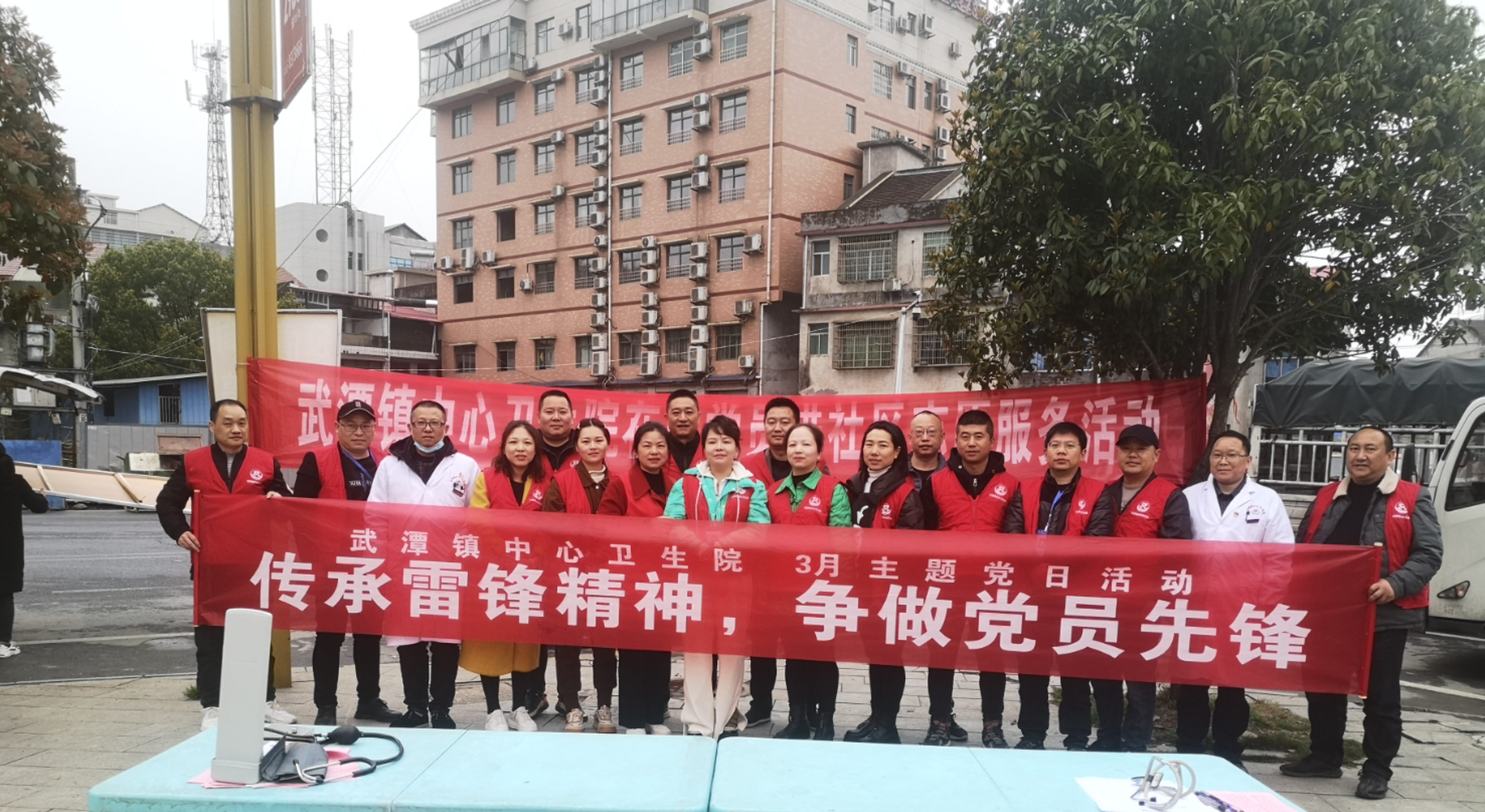 3月20日下午,桃江县武潭镇中心卫生院组织党员志愿者来到桃花新城广场开展“传承雷锋精神,争做党员先锋”志愿服务义诊活动。