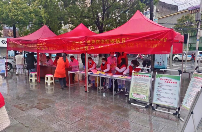 3月24日,第28个世界防治结核病日,桃江县健康教育中心、县疾控中心、县人民医院和桃花江中心医院在桃花江镇新龙超市前坪联合开展肺结核防治知识的宣传活动。