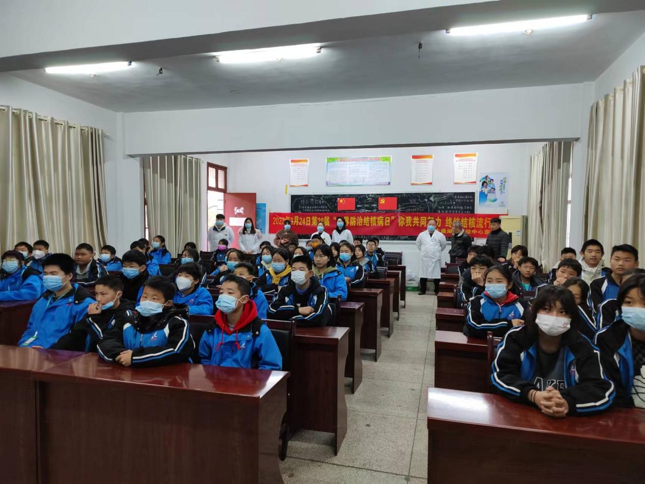 为了预防和杜绝校园结核病的发生和流行,呼吁社会各界广泛参与,共同终结结核病流行。近日,大通湖区金盆镇卫生院组织公卫办人员与青年志愿者一道走进金盆镇中学开展“你我共同努力 终结结核流行”世界防治结核病日宣传活动。