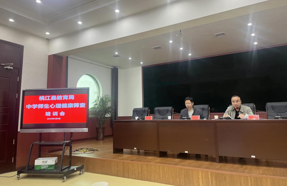 4月6日上午,在桃江县教育局召开了中学师生心理健康筛查启动会暨业务培训。县属学校、乡镇中心学校、民办学校业务副校长,全县初高中心理健康教育教师以及县心理康复中心专家共80余人参加。会议解读《2023年桃江县中学师生免费心理健康筛查实施方案》,对中学师生心理健康筛查工作作了相关要求,并就此项工作的开展进行了业务培训。