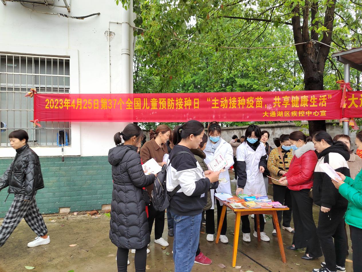 大通湖区金盆镇卫生院开展“主动接种疫苗 共享健康生活”4.25全国儿童预防接种日宣传活动