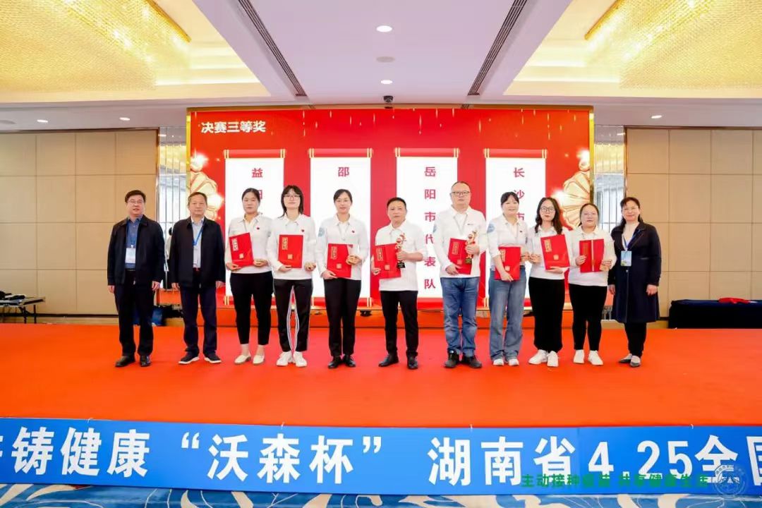 “过敏性休克一般在接种疫苗后2小时内发生,应及时注射肾上腺素等抢救措施进行治疗”,回答是“对”还是“错”、“接种部位发生红肿、痛疼、硬结等症状,反应轻微,多在1--2天自行恢复,这些反应属于....?”在4月26日省预防医学会主办的全省4.25全国儿童预防接种日知识竞赛总决赛现场。金盆镇卫生院零零后入党积极分子李婉婷代表益阳市参赛对,经过两轮激烈角逐,参赛选手沉着冷静,14个市州代表队参加比赛,最终益阳市代表队取得第4名荣获三等奖的佳绩。