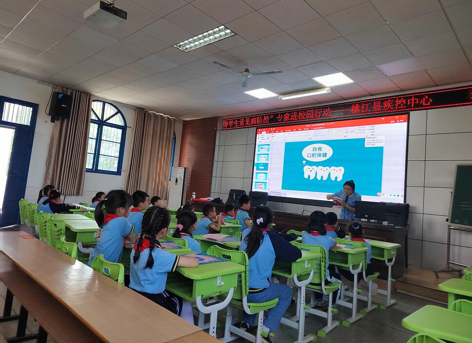 除此之外桃江疾控还将科普课件转发给桃江县教育局,在全县范围内通过学校健康教育课堂将科学饮食和近视防控、口腔保健等相关知识进行健康科普。