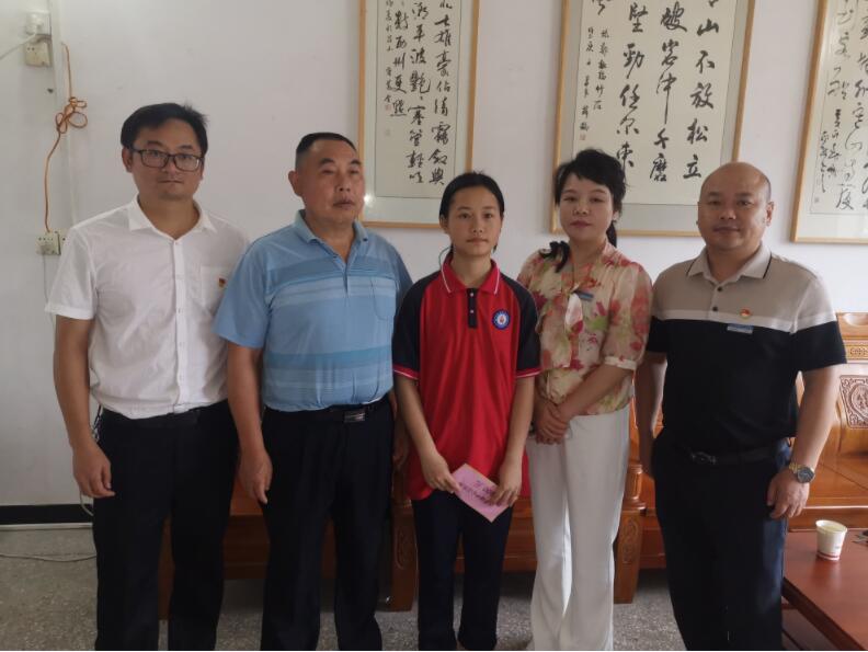 随后来到武潭镇天湾小学,李海燕详细了解了贫困学生周同学的家庭状况、收入来源和学习情况,将爱心资助款交到她手中,并叮嘱她好好学习,树立信心,做一个乐观积极、有社会责任感的人,学业有成后回报社会,将爱心和温暖传递下去,将扶贫济困、乐善好施的传统美德发扬光大。周同学激动的说道:“很感谢武潭镇中心卫生院对我的帮助,我将继续努力学习、勇敢追梦,带着这一份浓厚的爱心回报社会”。