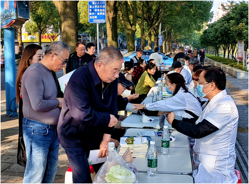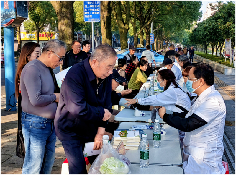活动现场,通过设置义诊咨询台、摆设健康教育宣传展板、发放各类健康知识宣传资料等形式,来至各医疗单位的10多位老专家教授为过往市民开展义诊、健康咨询,免费测量血压、血糖,热心给市民解惑答疑、让他们接受面对面的健康指导。