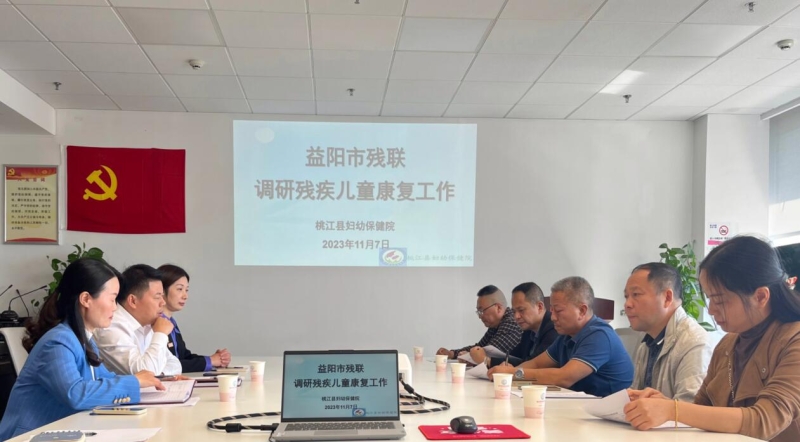 11月7日上午,益阳市残疾人联合会副理事长刘忠阳一行深入0-6岁残疾儿童定点康复机构桃江县妇幼保健院,对该院2023年度残疾儿童康复救助工作进行调研,桃江县残疾人联合会理事长胡军、副理事长黄俐陪同调研。