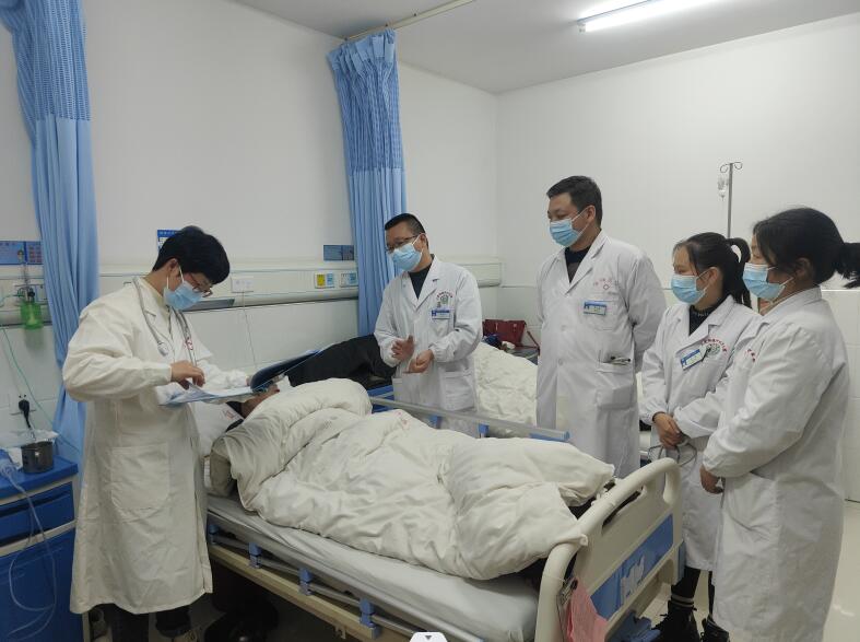 县人民医院专家分成医生组和护理组两个小组,医生小组专家深入临床,听取主管医生详细汇报患者的病史、目前治疗方案和治疗情况,专家对患者进行了完整规范的查房示范,一边询问病史、为患者进行详细的体格检查,一边对疾病的诊断、鉴别诊断、目前处理方案、转归进行了详细讲解,指导医生在查房过程中需要注意的问题、规范体格检查、强调沟通与人文关怀细节,根据最新指南及患者个体提出最佳诊疗方案。