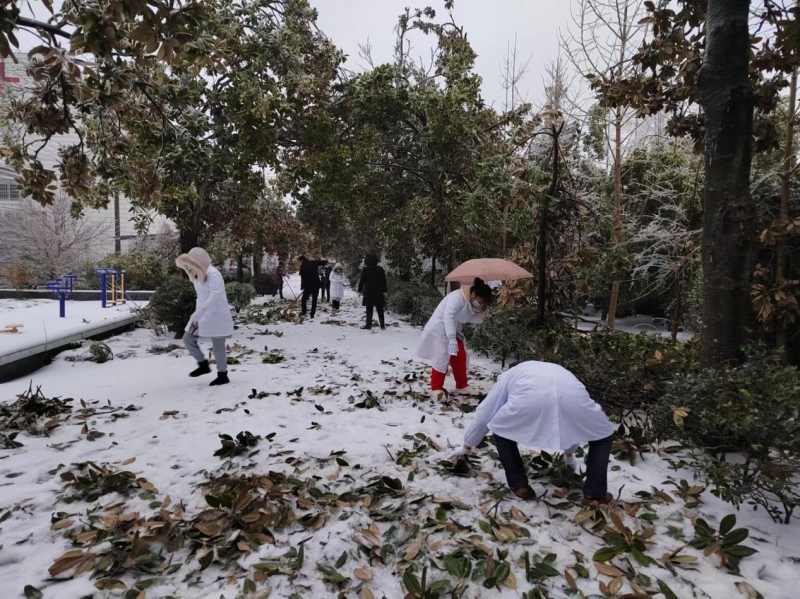 “等下我吃完中饭马上就来,会在公卫楼、放射科、住院楼等人员通道等会再次撒上盐、多放些防滑纸垫等”医保收费室党员示范岗窗口党员王光明同志离院时嘱咐道。从2月3日起,王光明同志就自发的承担起院内外残枝断木清理、除冰撒盐的工作,从早上忙到了中午,他放弃了休息时间默默的奉献着,还有张医生、王医生、金医生、诗瑶、文静、花平等等。全体“金医人”发扬着不畏严寒,吃苦耐劳精神,冰雪极寒迅速行动,用爱心和真心守护百姓健康,确保“医路”畅通。